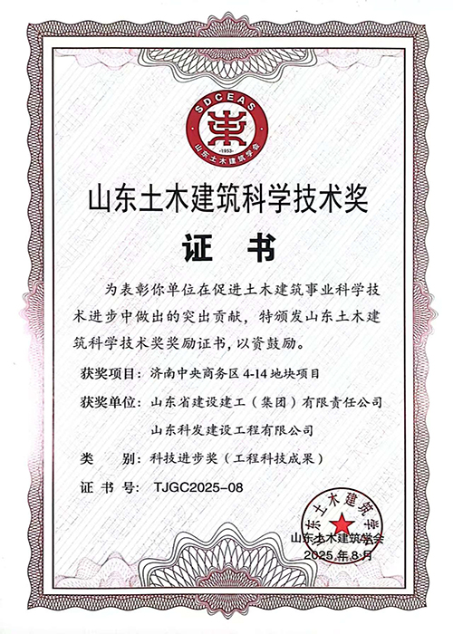 山東土木建筑科學(xué)技術(shù)獎(jiǎng):濟(jì)南中央商務(wù)區(qū)4-14地塊項(xiàng)目